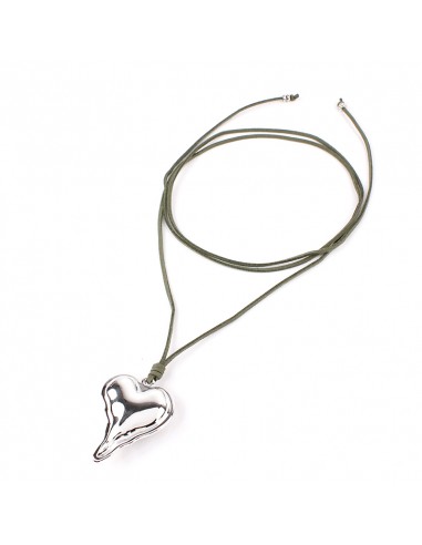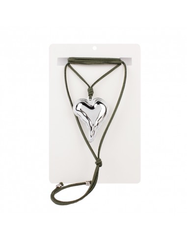 Collar corbatero de gamuza múltiples vueltas con dije exclusivo con forma de corazón de ccb níquel y terminaciones en punteras.