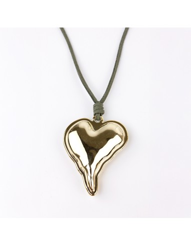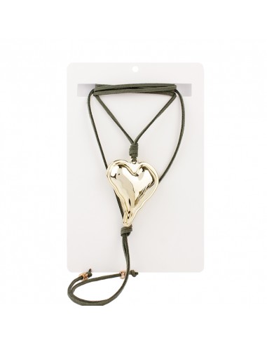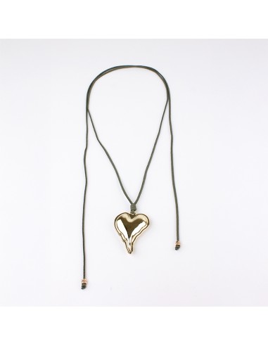 Collar corbatero de gamuza múltiples vueltas con dije exclusivo con forma de corazón de ccb dorado y terminaciones en punteras.