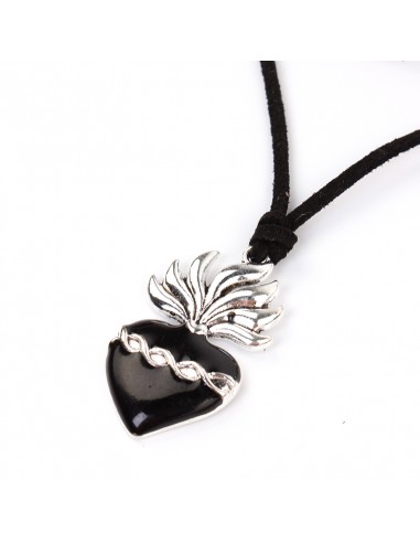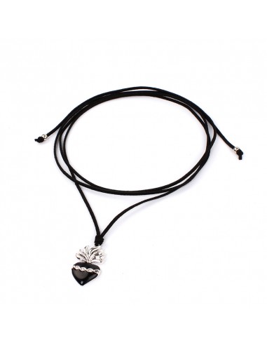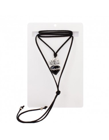 Collar corbatero de gamuza múltiples vueltas con dije exclusivo con forma corazón pintado a mano y terminaciones en punteras.
