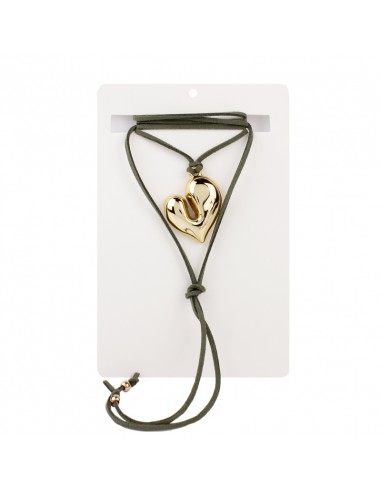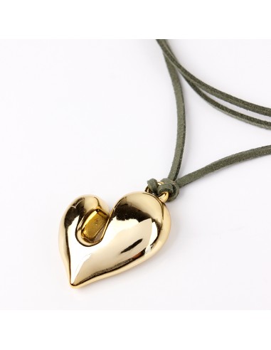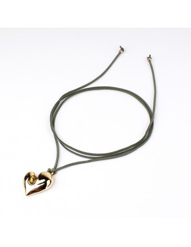 Collar corbatero de gamuza múltiples vueltas con dije exclusivo con forma de corazón de ccb dorado y terminaciones en punteras.