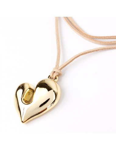 Collar corbatero de gamuza múltiples vueltas con dije exclusivo con forma de corazón de ccb dorado y terminaciones en punteras.