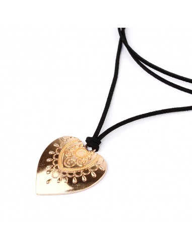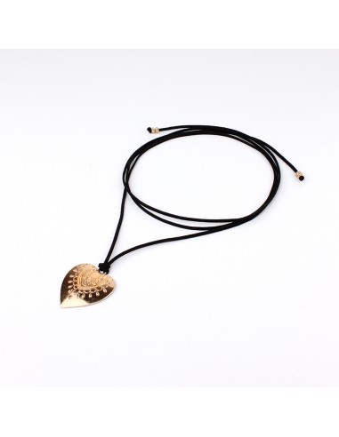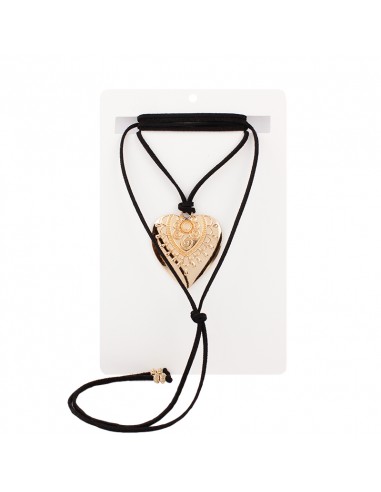 Collar corbatero de gamuza múltiples vueltas con dije exclusivo en forma de corazón dorado y terminaciones en punteras.