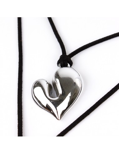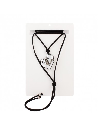 Collar corbatero de gamuza múltiples vueltas con dije exclusivo con forma de corazón níquel y terminaciones en punteras.