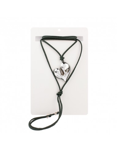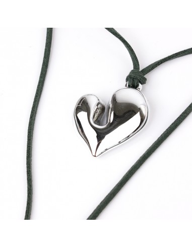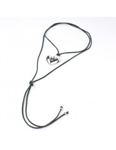 Collar corbatero de gamuza múltiples vueltas con dije exclusivo con forma de corazón níquel y terminaciones en punteras.
