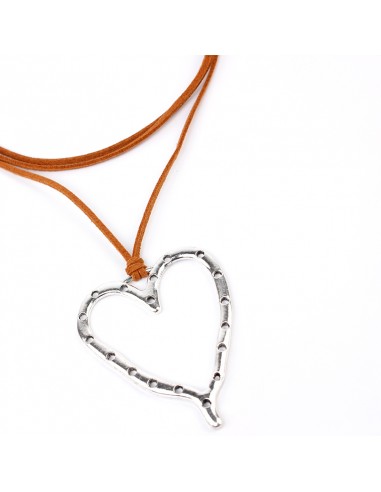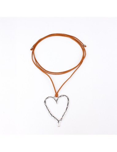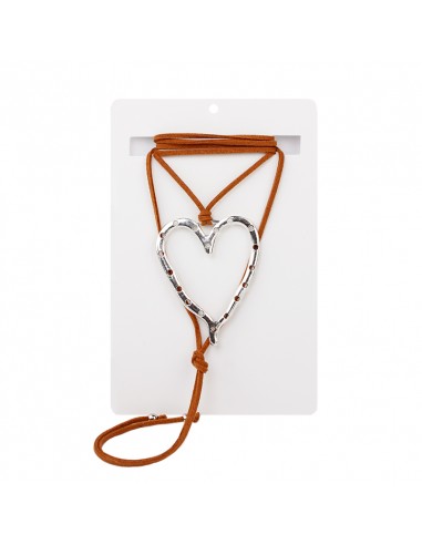 Collar corbatero de gamuza múltiples vueltas con dije exclusivo con forma de corazón níquel y terminaciones en punteras.