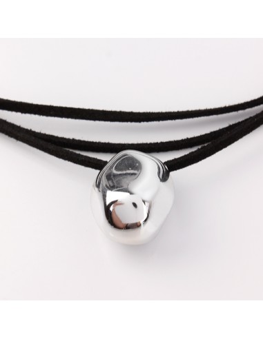 Collar corbatero de gamuza múltiples vueltas con dije chunky exclusivo de ccb níquel y terminaciones en punteras.
