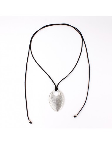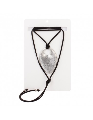 Collar corbatero de gamuza múltiples vueltas con dije exclusivo níquel y terminaciones en punteras.