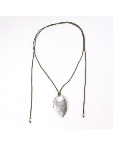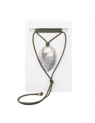 Collar corbatero de gamuza múltiples vueltas con dije exclusivo níquel y terminaciones en punteras.