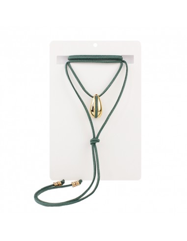 Collar corbatero de gamuza múltiples vueltas con dije exclusivo chunky intervenido con gamuza y terminaciones en punteras.