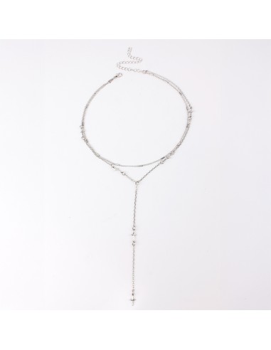 Collar corbatero de doble caída de cadenas diferenciadas intervenida con dijes exclusivos doble agarre con forma de estrellas níquel.