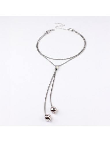 Collar corbatero de doble caída de cadenas diferenciadas con piezas colgantes exclusivas níquel.