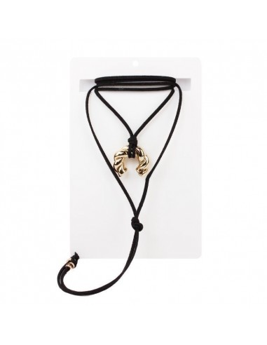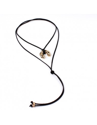 Collar corbatero de gamuza de múltiples vueltas con dije exclusivo de ccb dorado y terminaciones en punteras.