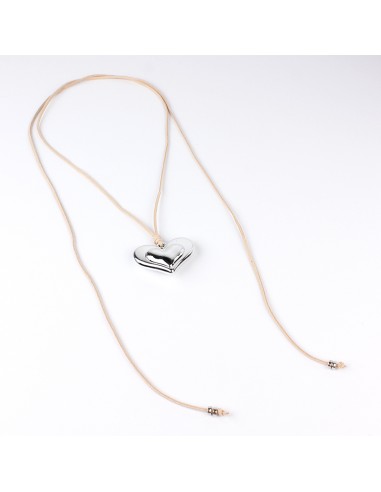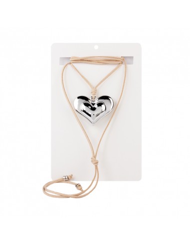 Collar corbatero de gamuza múltiples vueltas con dije exclusivo con forma de corazón de ccb níquel y terminaciones en punteras.