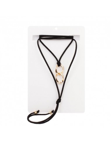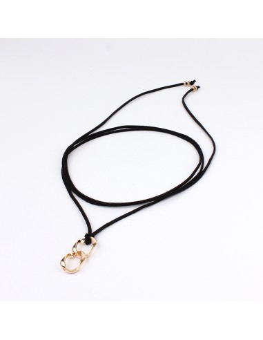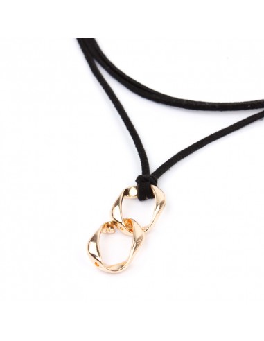 Collar corbatero de gamuza múltiples vueltas con dije exclusivo de eslabones dorados y terminaciones en punteras.