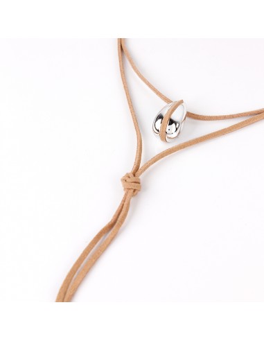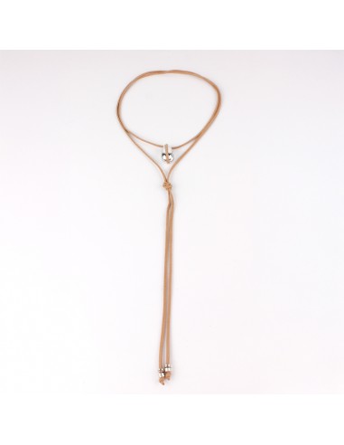 Collar corbatero de gamuza múltiples vueltas con dije exclusivo chunky intervenido con gamuza y terminaciones en punteras.
