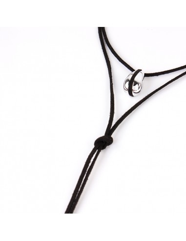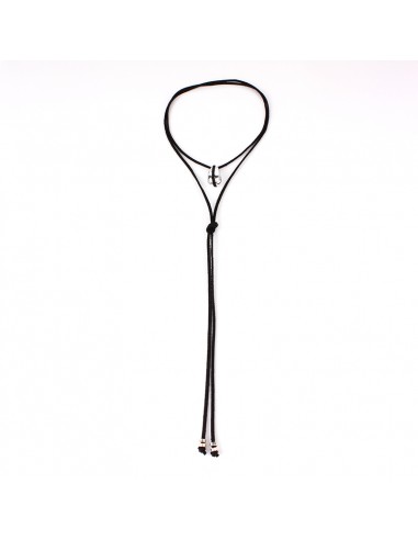 Collar corbatero de gamuza múltiples vueltas con dije exclusivo chunky intervenido con gamuza y terminaciones en punteras.