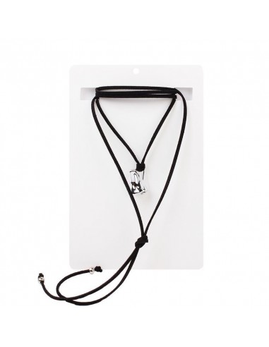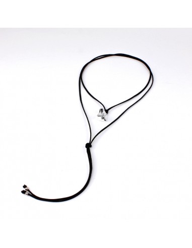 Collar corbatero de gamuza múltiples vueltas con dije exclusivo de ccb níquel y terminaciones en punteras.