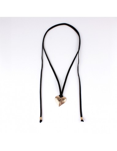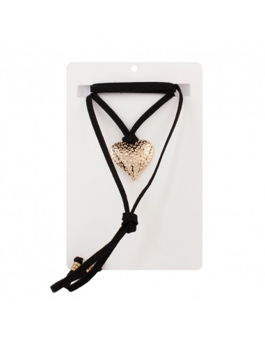 Collar corbatero de gamuza múltiples vueltas con dije exclusivo dorado y terminaciones en punteras.Medidas: