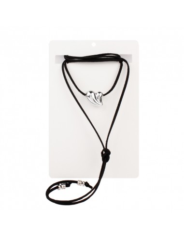 Collar corbatero de gamuza múltiples vueltas con dije exclusivo de ccb en forma de corazón níquel.terminaciones en punteras.