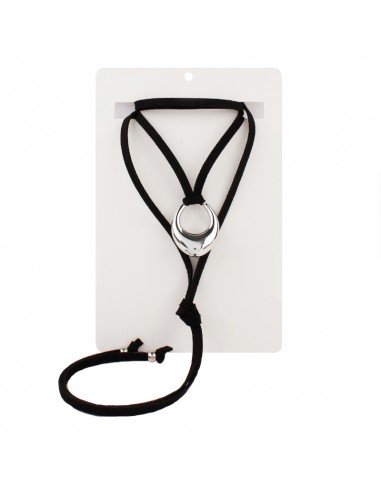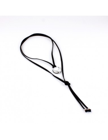 Collar corbatero de gamuza múltiples vueltas con dije exclusivo de ccb níquel y terminaciones en punteras.