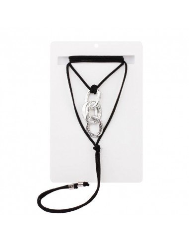 Collar corbatero de gamuza múltiples vueltas con eslabones de cadena diferenciada níquel.terminaciones en punteras.
