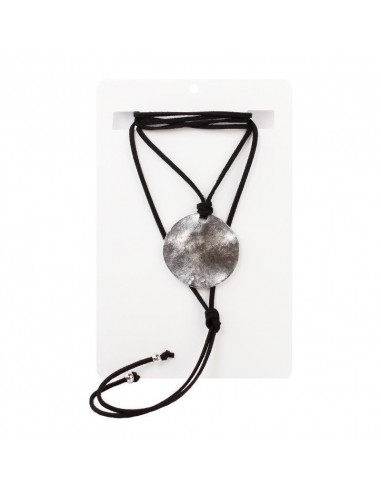 Collar corbatero de gamuza múltiples vueltas con dije exclusivo níquel. Terminaciones en punteras.