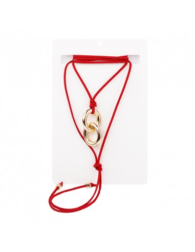 Collar corbatero de gamuza múltiples vueltas con eslabones de cadenas diferenciadas doradas. Terminaciones en punteras.
