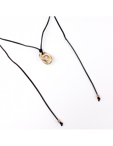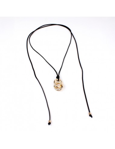 Collar corbatero de gamuza múltiples vueltas con eslabones de cadenas diferenciadas doradas. Terminaciones en punteras.
