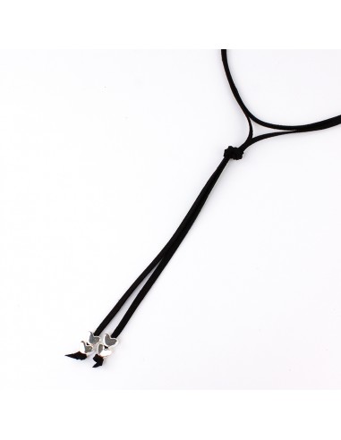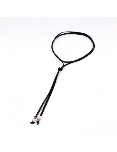 Collar corbatero de gamuza múltiples vueltas con terminaciones en punteras en forma de corazones de ccb níquel.