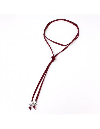 Collar corbatero de gamuza múltiples vueltas con terminaciones en punteras en forma de corazones de ccb níquel.