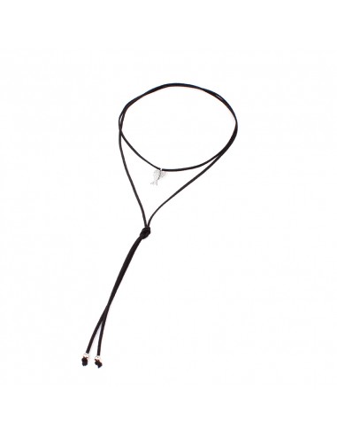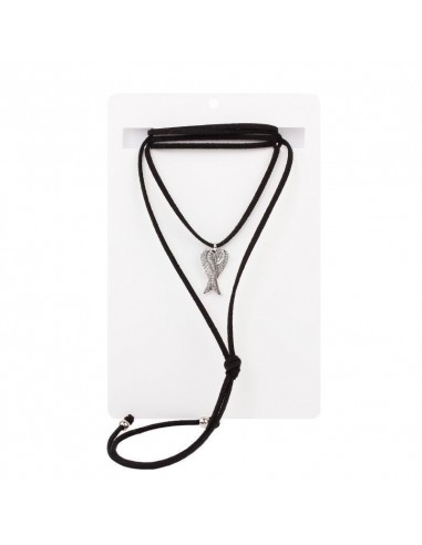 Collar corbatero de gamuza de múltiples vueltas con dije exclusivo con forma de alas níquel y terminaciones en punteras.