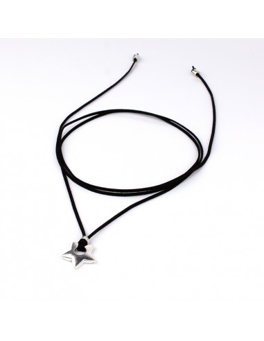 Collar corbatero de gamuza múltiples vueltas con dije exclusivo con forma de estrella níquel y terminaciones en punteras.Medidas: