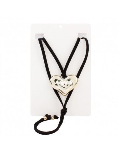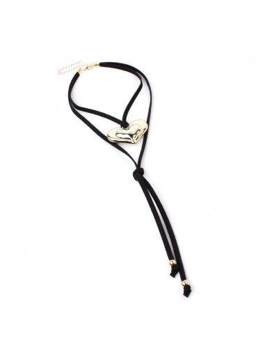 Collar Corbatero de gamuza con dije exclusivo en forma de corazón dorado.