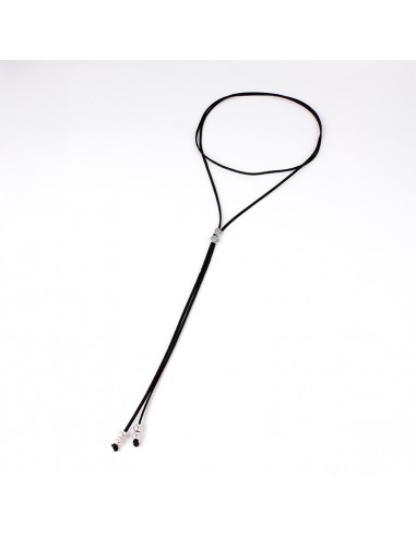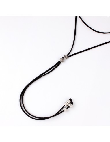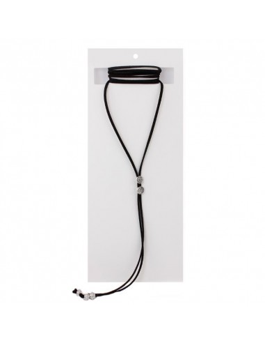 Collar corbatero de gamuza múltiples vueltas con dijes exclusivos níquel y terminaciones en punteras.