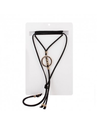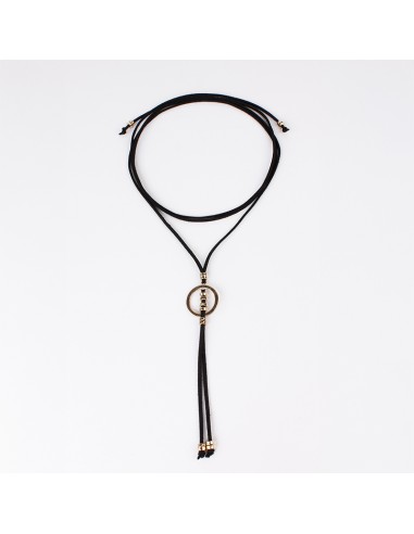 Collar corbatero de gamuza múltiples vueltas con dije exclusivo con forma dorado.
