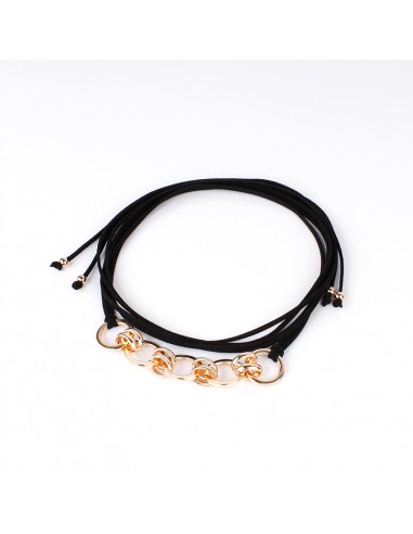 Collar corbatero de gamuza intervenida con cadena exclusiva dorada.