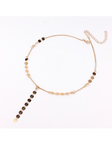 Collar largo de cadena diferenciada intervenida con medallas doradas.