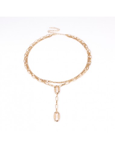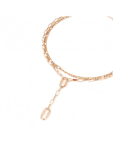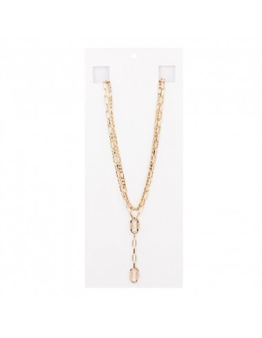 Collar largo de doble caída de cadena diferenciada con dijes exclusivos dorados.