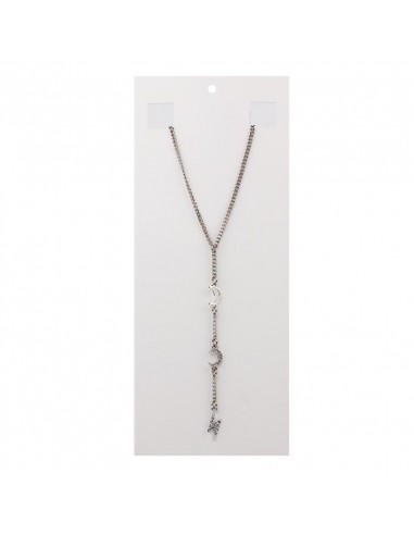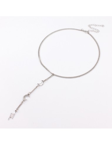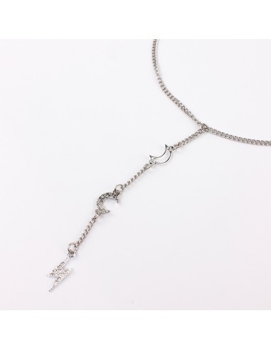 Collar corbatero de cadena diferenciada con dijes de strass exclusivos con forma de rayo y luna níquel.