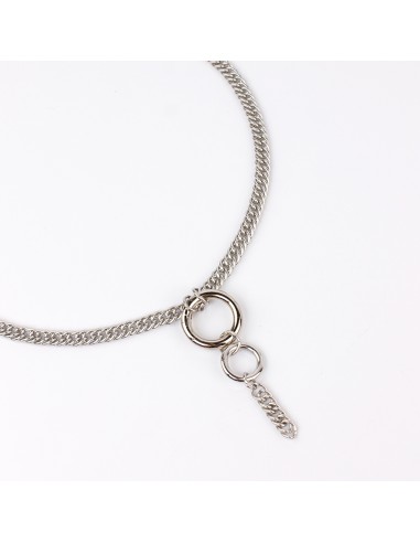 Collar largo de cadena diferenciada con dijes circulares exclusivos de ccb níquel y caída adicional de cadena.