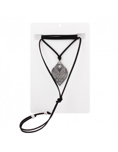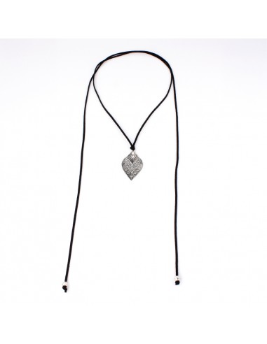 Collar corbatero de gamuza múltiples vueltas con dije exclusivo níquel con forma de hoja y terminaciones en punteras.