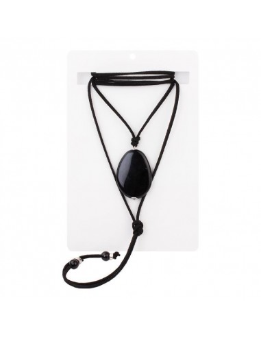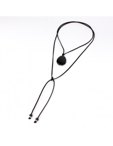 Collar corbatero de gamuza múltiples vueltas con dije exclusivo geométrico de acrílico negro y terminaciones en punteras.