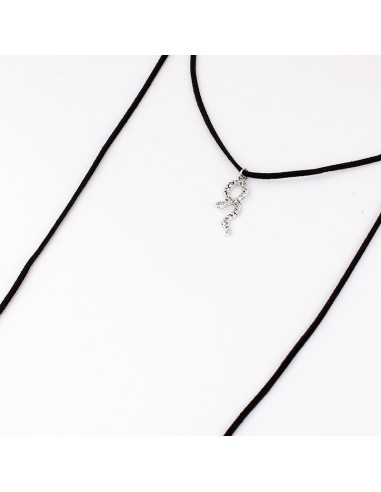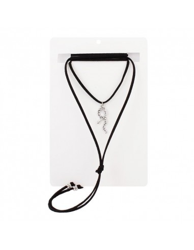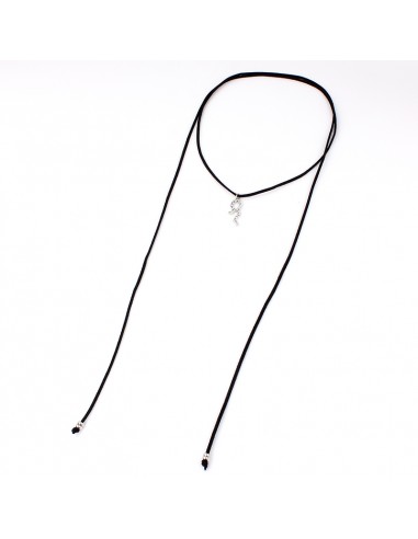Collar corbatero de gamuza múltiples vueltas con dije exclusivo con forma de serpiente níquel.