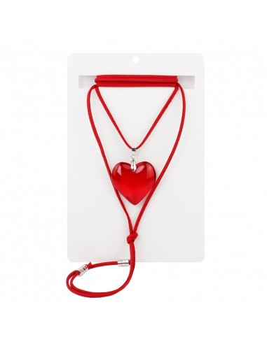 Collar de múltiples vueltas de gamuza con dije exclusivo con forma de corazón de acrílico y terminaciones en punteras.