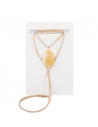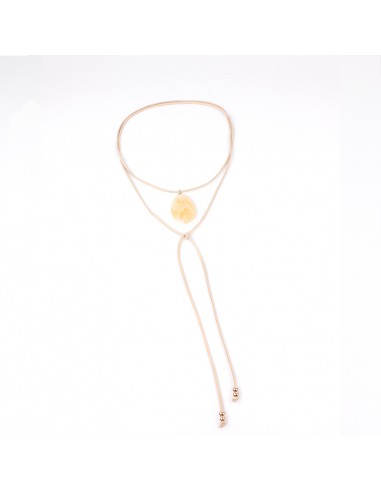 Collar de múltiples vueltas de gamuza con dije exclusivo de acrílico y terminaciones en punteras.