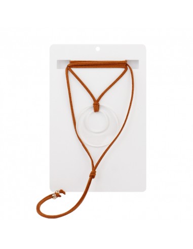 Colla de múltiples vueltas de gamuza con dije exclusivo de acrílico cristal y terminaciones en punteras.