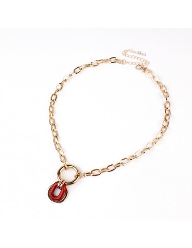 Collar corto de cadena diferenciada, intervenida con piezas circulares de ccb y acrílico.