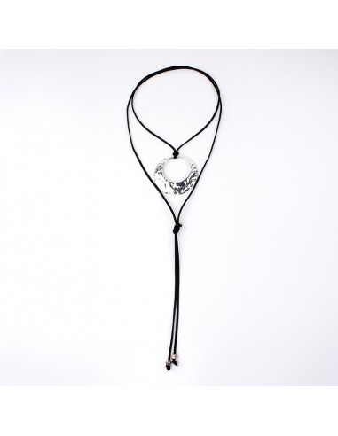 Collar de múltiples vueltas de gamuza con dije exclusivo de forma circular níquel.