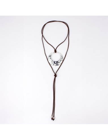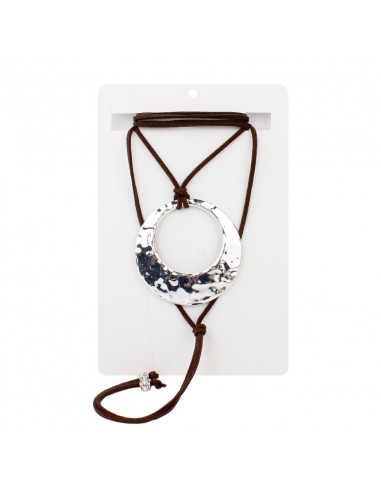 Collar de múltiples vueltas de gamuza con dije exclusivo de forma circular níquel.