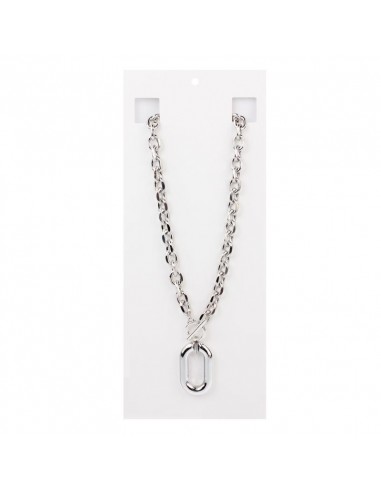 Collar largo de cadena diferenciada con dije exclusivo ovalado y cierre marinero.